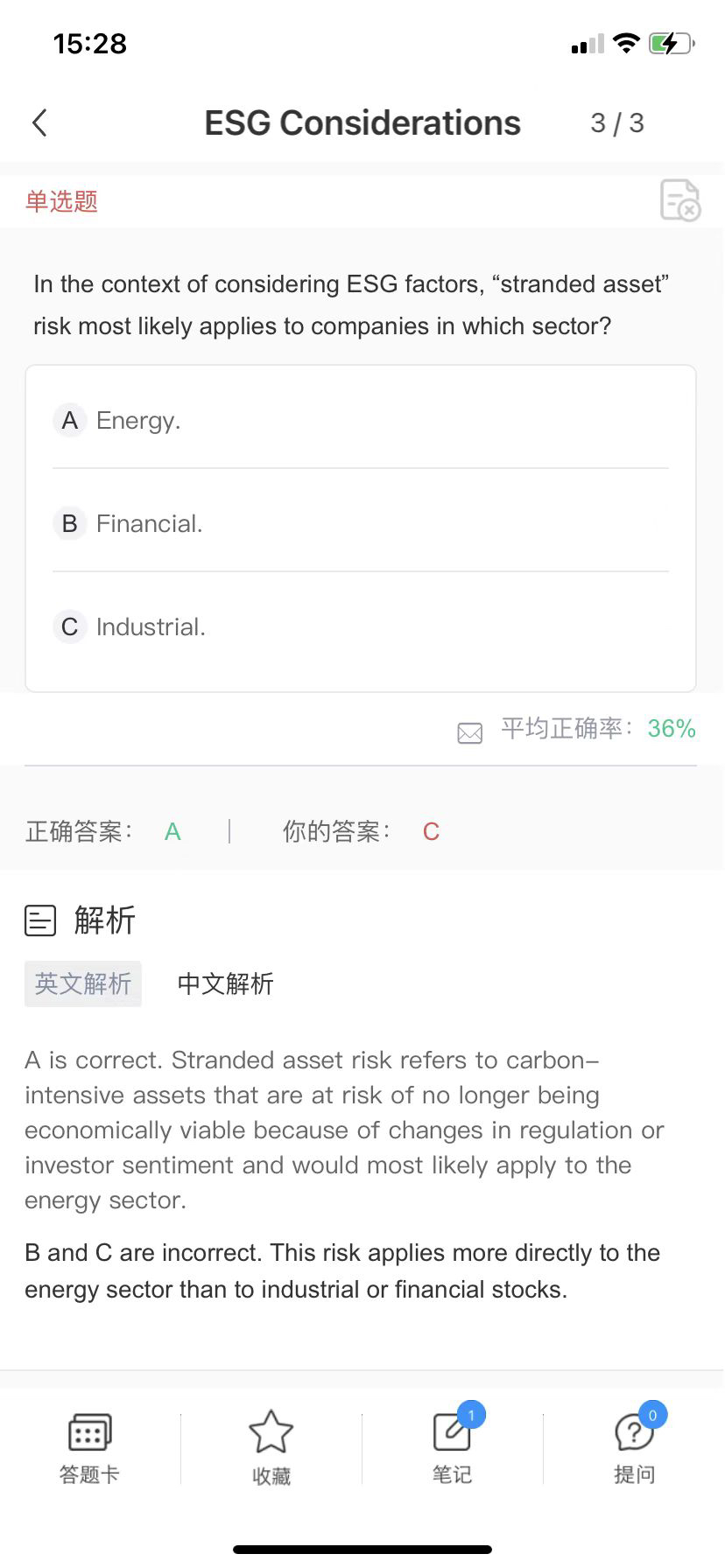 CFA的题库同题选择不同答案