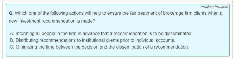 老师,这道题说公司做了一个新的投资建议,为了确保fair,A选项说的要告知所有的客户,这个说法错在哪儿了呀?