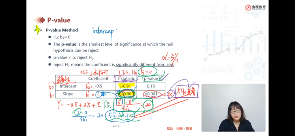 老师,我想问一下,表格第一列是估计出的b1 b0,那我现在做假设检验的目的是啥?检验的准不准确?