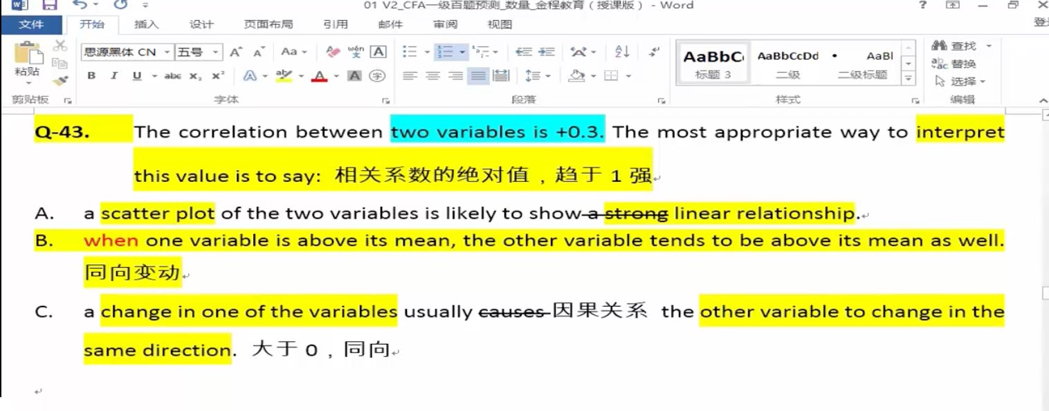 43题为什么说一个变量高于他的均值另外一个变量也高于均值就能说明是同向变动了呢?