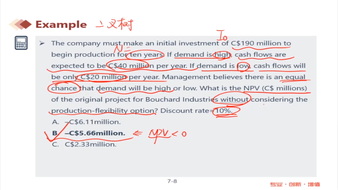 考虑option才是-5.66吧?题目不是问不考虑option的NPV吗