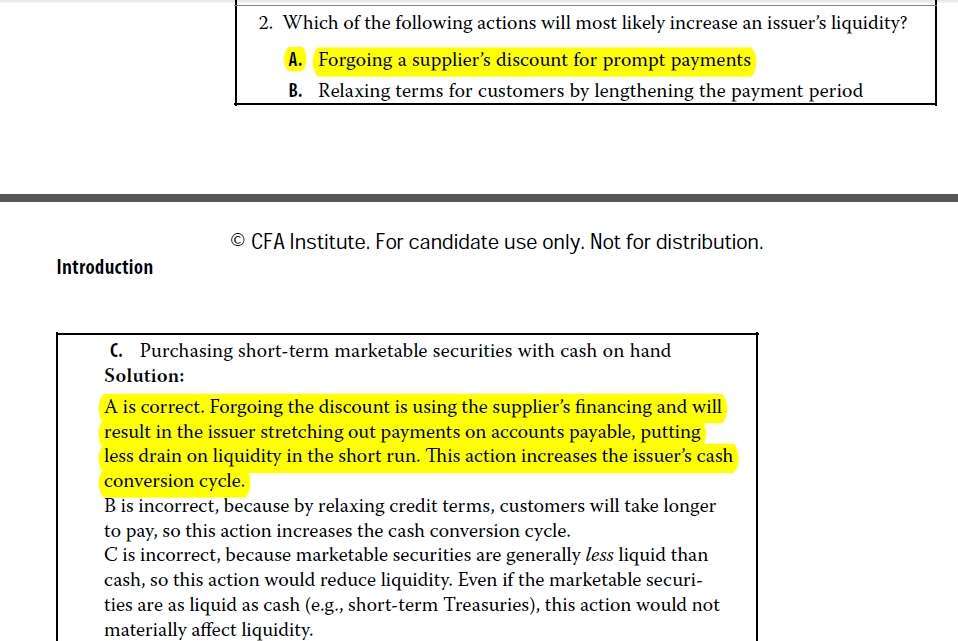 本题经典题第5题和书P218-Question 2,是同一题,为什么本题选的是decrease liquidity, 但是书上这题,见截图,是选increase liquidity?