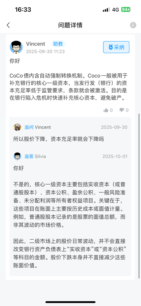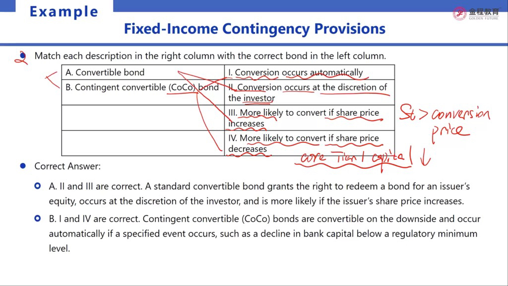 我感觉老师还是没回答我的问题,为什么股价下降,coco会转换。老师分别讲解了coco什么时候会转为一级资本,以及股价下降时不影响一级资本。那为什么这个题股价下降,coco就会转股呢?