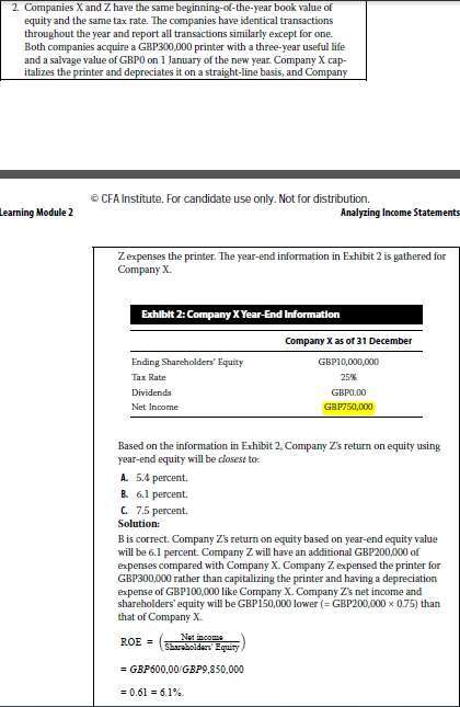 根据本页PPT的讲解,我的疑问是:书P414-Question Set 1-Exhibit 2中,net income为什么是750,000,难道不应该是10,000,000*75%=7,500,000?