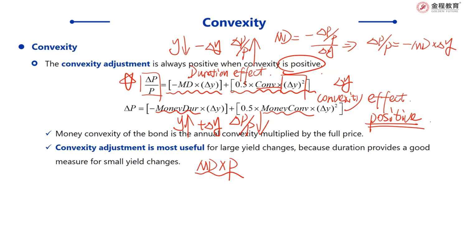 - 对于老师讲的这部分,1. 我理解FRA的Payoff始终等于利率期货的Payoff部分进行折现(除以1个大于1的数),也就是说,FRA的Payoff的变动幅度 应该 始终小于利率期货的变动幅度。2. 至于是涨多跌少,还是涨少跌多,其实MRR在分母上,可以根据1/x的曲线特点来理解,无非就是MRR上升时1/(1+MRR)的变动幅度 小于 MRR下降时1/(1+MRR)的变动幅度,所以如果MRR上升时,Payoff是上升的,那么就是涨少跌多,如果MRR上升时,Payoff是下降的,那就是涨多跌少。以上2点,我理解的对吗?