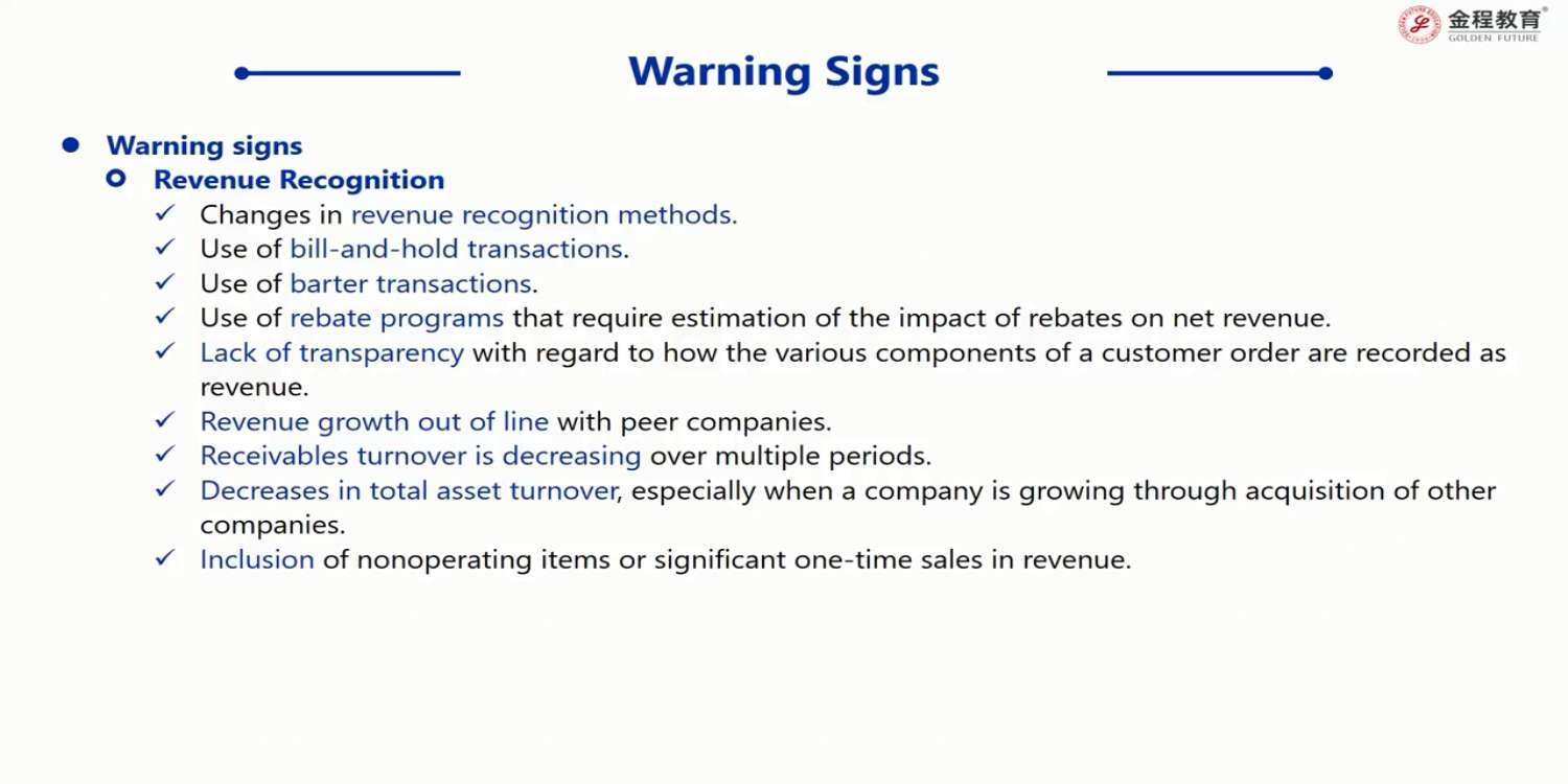 根据本页PPT的视频讲解,我的疑问是:官网习题-Question 35-B选项答案解析里的这句话怎么理解?什么叫“制造工厂的出售很可能是一次性交易,在未来几年不会持续下去。因此,报告收益的质量比上一年有所下降。”?根据本页PPT,这种one-time sales in revenue不应该是warning signs吗,怎么成了与decreased earnings quality相关的因素?影响earnings quality的因素,一共有哪些?C选项,怎么理解?