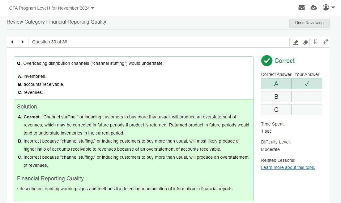 根据本页PPT的视频讲解,我的疑问是:官网习题-Question 30-channel stuffing什么东西?这一章里没有讲过这个知识点?怎么理解“未来期间的退货往往会低估当期的库存”?这句话什么意思?