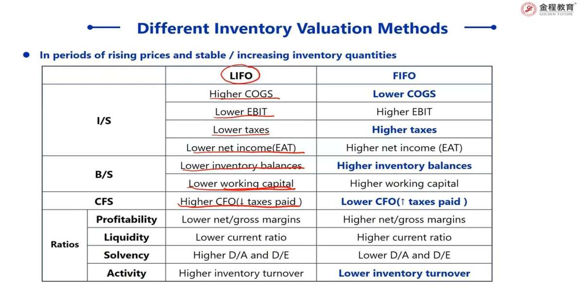老师,请问这个表格和教材535页有出入,如何判断。如 LIFO中的税费,营运资本。