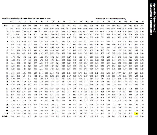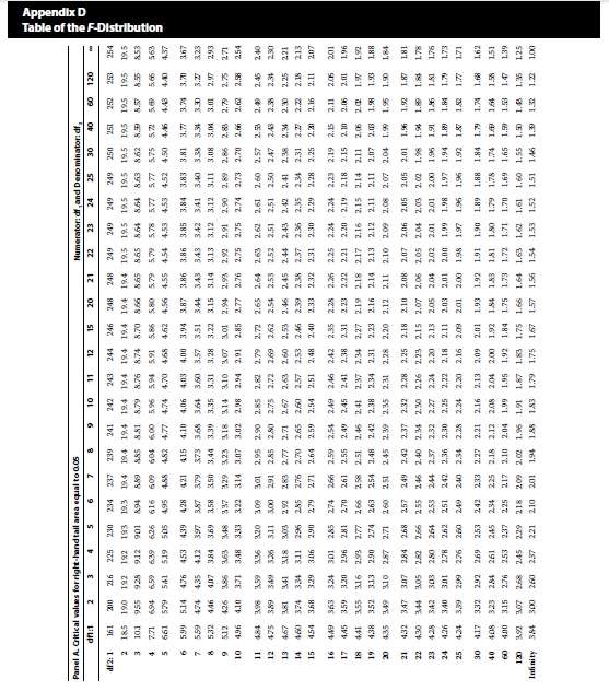 已回答结合本题,Module 8-书P226-Example 3-1. 第1问Step 4, F分布、双尾、 α = 5%、自由度都是417,书上写的这两个关键值0.82512与1.21194是怎么根据截图2书P345表格得出的?是这张表格中的哪两个数? 2. 第2问Step 4, F分布、单尾、α = 5%、自由度都是417,书上写的这关键值1.17502是怎么根据截图3书P344表格得出的?是这张表格中的哪个数?