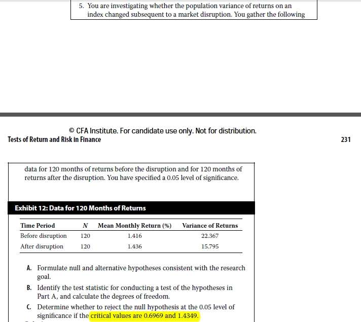 结合本题,本题说的是F检验无论是单尾检验还是双尾检验,其拒绝域只在右边,我的疑问是:Module 8-书P230-Question Set 2-第5问的C小问,明确写了critical value值有两个,分别是0.6969以及1.4349. 既然本视频中说了拒绝域只在右边,那么F分布只可能有右边的一个critical value 1.4349,截图2的书上这道题,为什么还有左侧的critical value=0.6969?这个0.6969是怎么通过截图3,找到的?