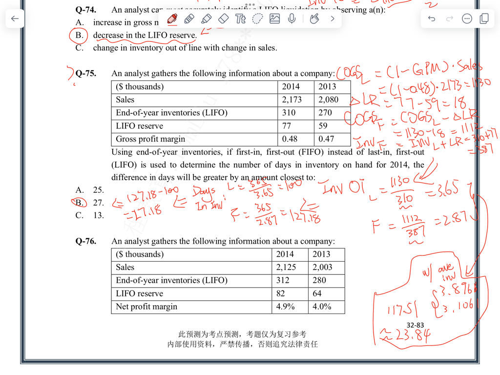 老师,Financial Statement 百题第75题算Inventory Turnover的时候为什么没用Average Inventory,而只是用了2014年的end inventory呢