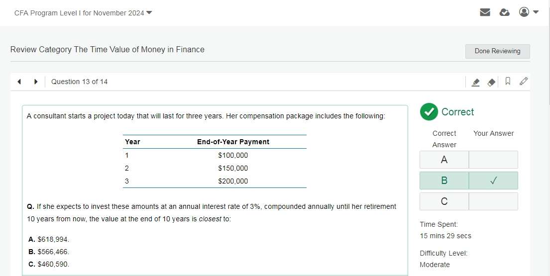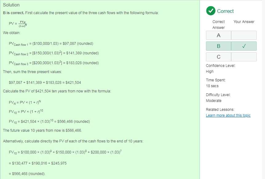 已解决Module 2-官网习题-Practice Problems-Question 13-截图3是我的计算过程,请问为什么错?为什么不能直接将第1年、第2年、第3年年末的payment 直接算10年后的future value?然后求和?为什么非要按照答案中的步骤,首先把表格中的end-year payment都折现到0时刻加总求和,然后再算10年后的future value?