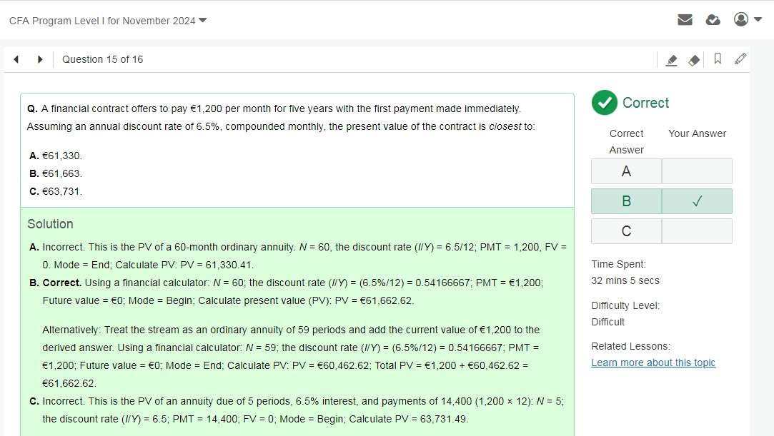 Module 2-官网习题-Practice Problems-Question 15-本题 financial contract的future value为什么等于0?同类型的债券题,为什么future value=100?为什么本题是BEGIN模式?怎么判断是先付年金BNG模式还是后付年金END模式?