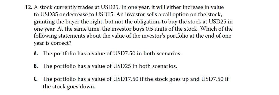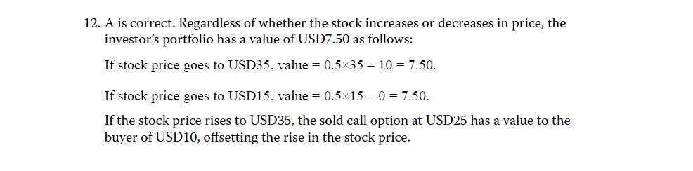 Module 2-Practice Problems-Question 12-https://www.gfedu.cn/home/questiondetail.html?ifTask=1&QuesId=945885&from=1 这个链接,value = 0.5×35 – 10 = 7.50 这个计算式所对应的公式,在数量这本书的第几页,在衍生品这本书的第几页?value = 0.5×35 – 10 = 7.50 这个计算式代表什么含义,怎么理解?portfolio 的总价值,为什么等于未来的价格减去卖家因为卖出看涨期权而亏损的价格?