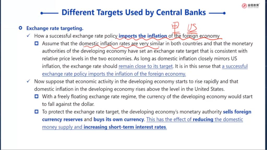 进口外国通胀,是不是可以理解为:通过调整目标汇率,锚定本国通胀与外国的温和通胀水平;当本国经济活动快速发展通胀率上升,通过卖出外币买入本币,调节汇率,促使本币数量减少,本币升值,让市场回归正常。而使用这种方式调节通胀,需要本国经济能够承受这种调节带来的代价,以保证不会反过来带来通缩。我的理解是否完整及正确,请老师指正,谢谢