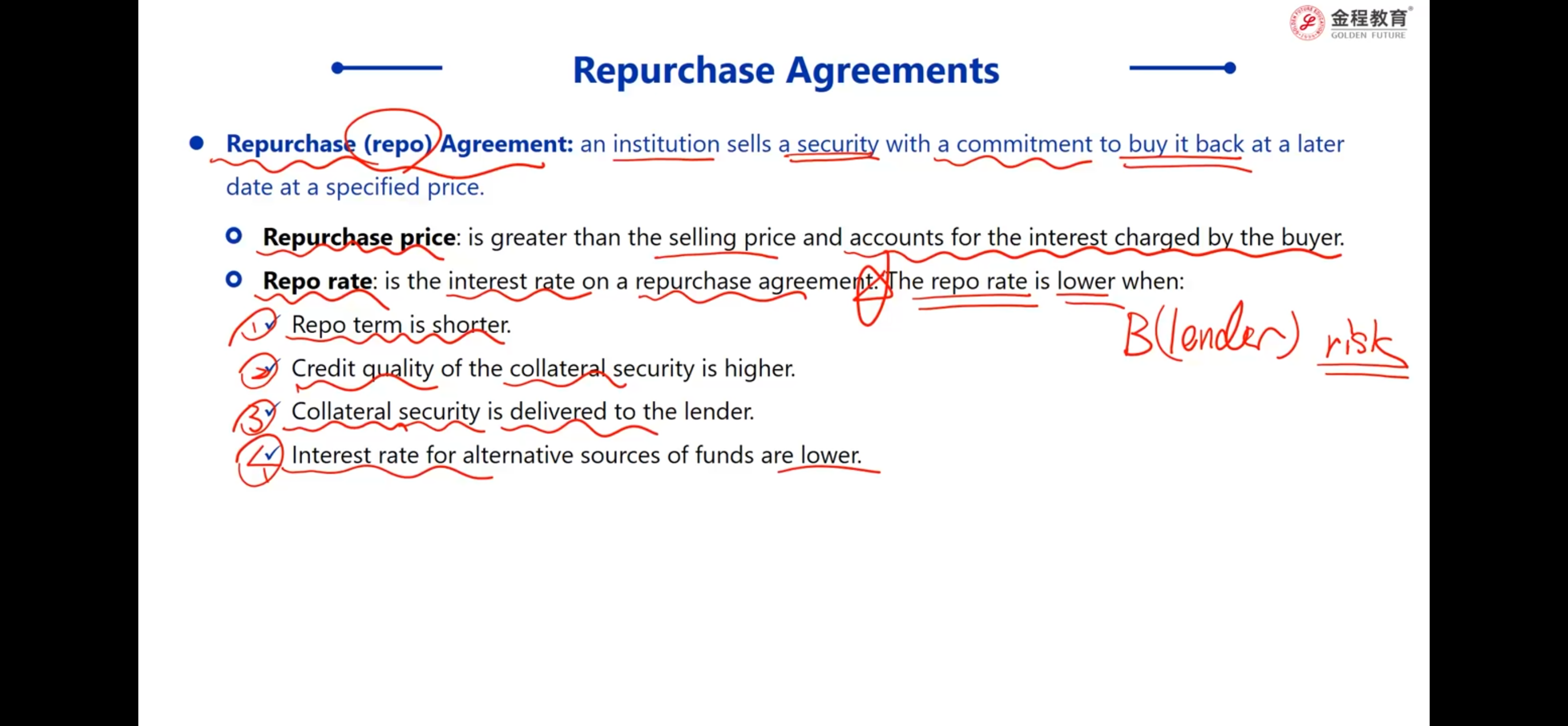 - 对于老师讲的这部分,1. 我理解FRA的Payoff始终等于利率期货的Payoff部分进行折现(除以1个大于1的数),也就是说,FRA的Payoff的变动幅度 应该 始终小于利率期货的变动幅度。2. 至于是涨多跌少,还是涨少跌多,其实MRR在分母上,可以根据1/x的曲线特点来理解,无非就是MRR上升时1/(1+MRR)的变动幅度 小于 MRR下降时1/(1+MRR)的变动幅度,所以如果MRR上升时,Payoff是上升的,那么就是涨少跌多,如果MRR上升时,Payoff是下降的,那就是涨多跌少。以上2点,我理解的对吗?