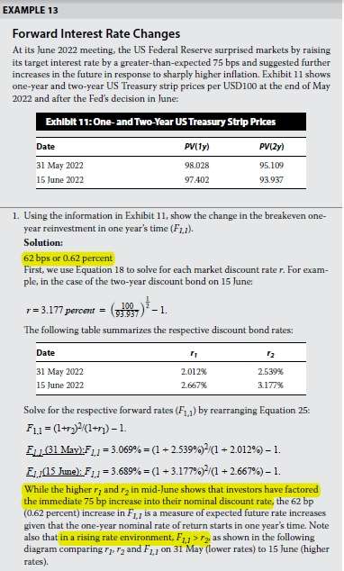 Module 2-书P73-Example 13-Question 1-1.Solution 中计算得出的r=3.177%, 但是Solution第1行写的却是0.62%? 2.Solution中标黄的最后一段话,根据表格中的数字,2.012%+75bp=2.762% 并不是表格中的2.667%,2.539%+75bp=3.289% 并不是表格中的3.177%?3. in a rising rate environment, 为什么 F1,1>r2?