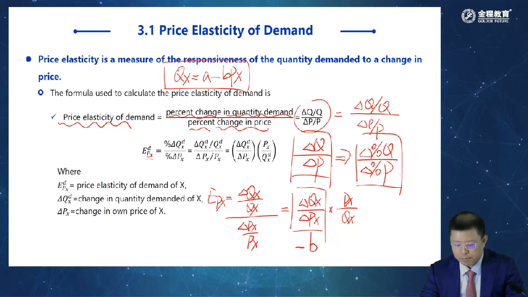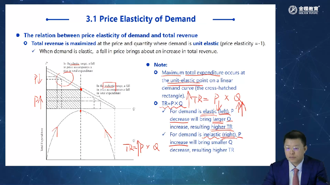 图中的斜线是需求曲线吗?我理解富有弹性和弹性小的程度是指直线的斜率,也就是说直线本身决定啦弹性大小,为什么图中直线上的两个点还有弹性大小之分?