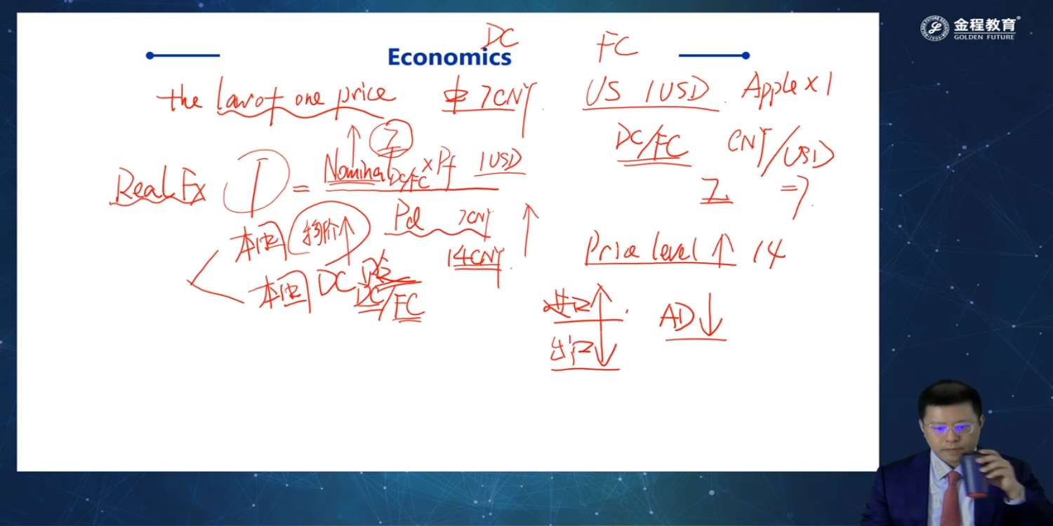这里老师解释说:物价上升,本地货币购买力变弱,通货膨胀.我的理解这是长期情况吧? 因为短期应该直接影响到的是实际汇率而不是名义汇率对吗? 另外,货币购买力,通货膨胀这些看的是名义汇率还是实际汇率呢? 如果按照老师之前说的,先假设名义不变,本地物价上升,那么此时真实汇率下降,此时是不是货币购买力是上升的,本币是升值的,此时如果看真实汇率,应该本币升值,应该是通货紧缩吧?如果看的是名义汇率则保持不变? 但此时应该是指"短期"吧? 然后名义汇率是为了平衡物价,因此长期来看,名义汇率应该会随着本地物价上升而上升,此时真实汇率应该保持不变吧?此时本币购买力应该是不变的吧(分子分母同比例放大)? 此时通胀膨胀看什么?如果看真实汇率就不变,看名义汇率应该是变大的,货币贬值,通货膨胀. 这块怎么分析比较好?