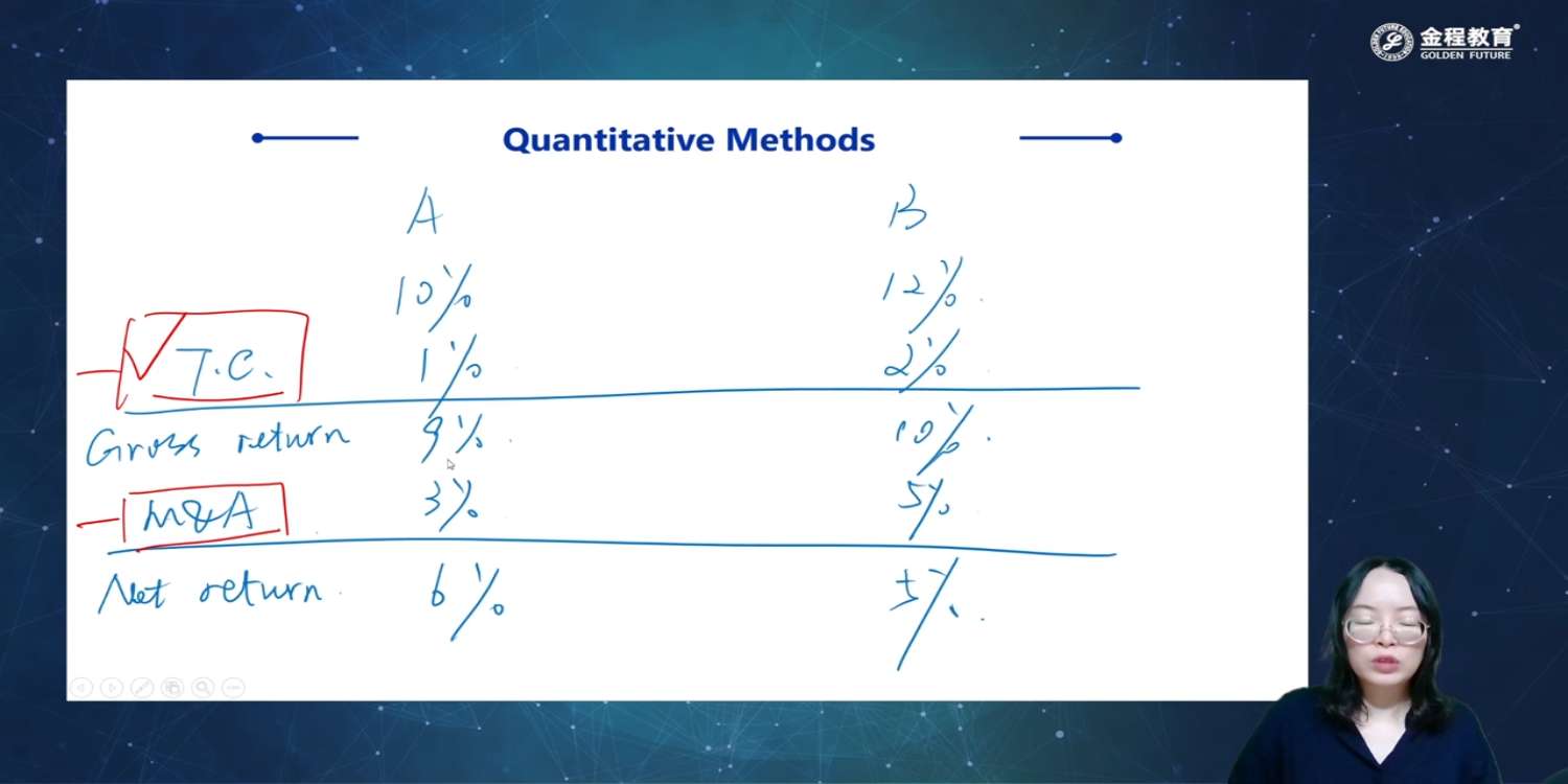 这里一开始A 和 B 的收益率是什么收益率呀?是名义收益率吗?在名义收益率的基础上扣除交易成本后才是 Gross return