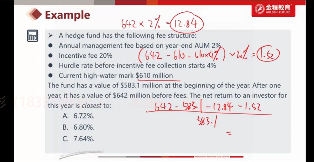 请问一下这道题没有说incentive fee 和management fee 是独立算的,为什么算Incentive fee的时候不用扣除管理费呢
