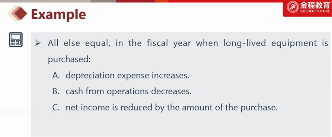 老师你好,请问这道题为什么是选A呢? 在讲到长期资产资本化还是费用化的时候,如果资本化那就是后面每一年有一个折旧的费用,如果是费用化的话就是第一年一次性算作COGS,然后接下来每年不再产生任何费用,所以答案A是从资本化的角度考虑,折旧费增加没问题,但是答案C是从费用化的角度考虑,Net income会在第一年的时候直接减掉这个设备的费用,为什么不对呢?