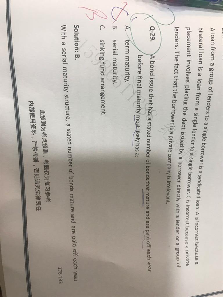 CFA1级其他,Q312,老师说选B,印刷答案是A,应该选哪个?为什么?谢谢老师