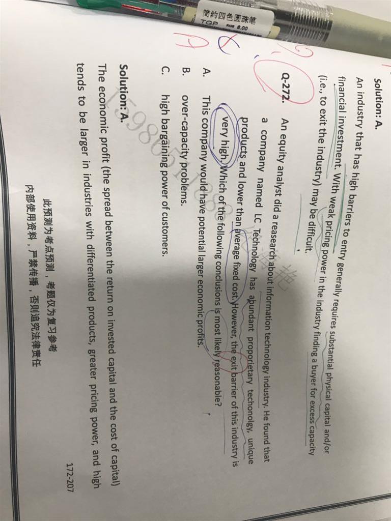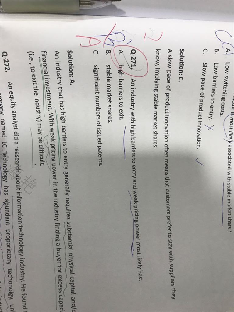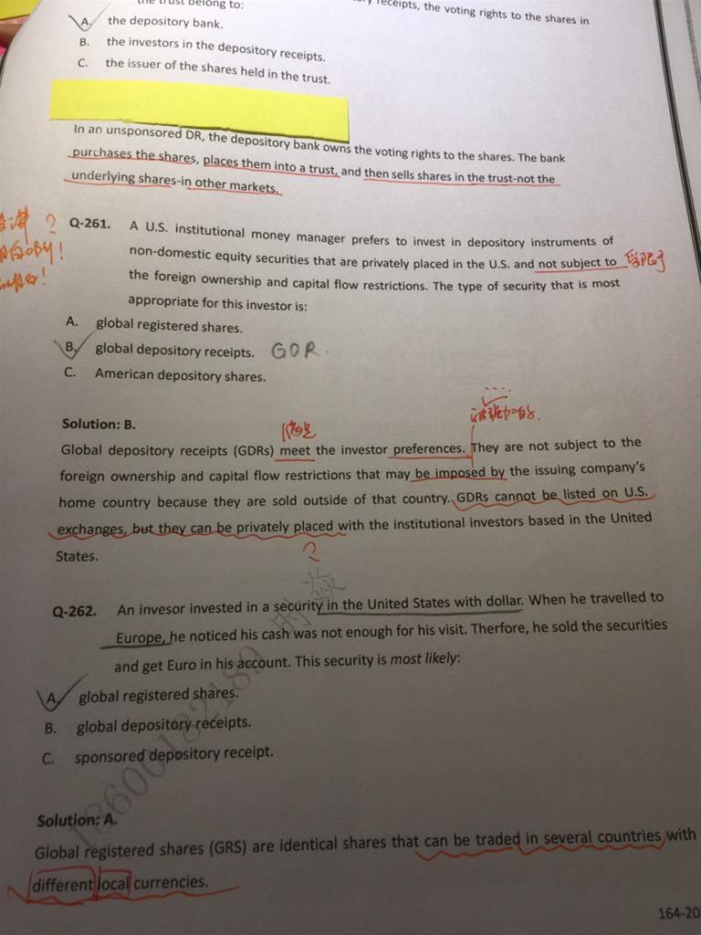 CFA1级,百题,权益,Q261和262,可以对比讲一下吗,尤其261不明白,谢谢老师