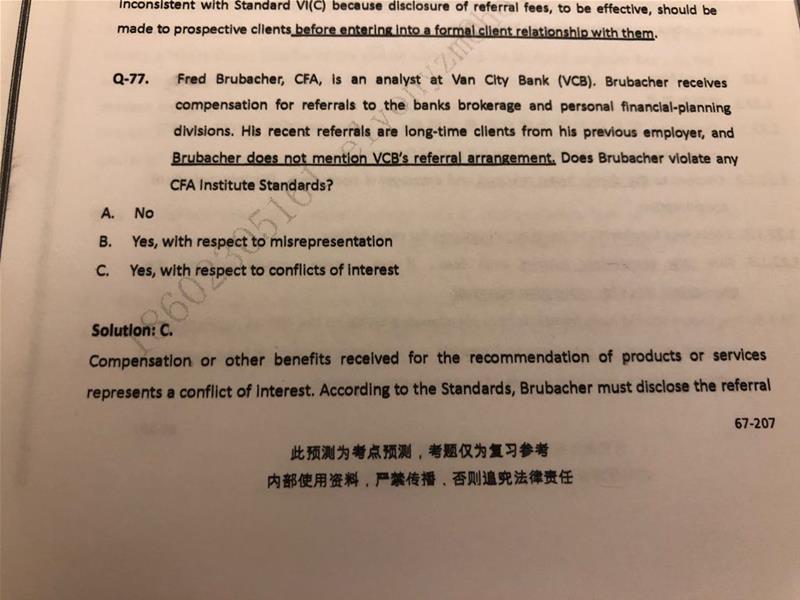 有几个问题 1. 答案说...represents a conflict of interest, 请问是什么谁跟谁的conflict,为什么 2. 答案说Brubacher must disclose the referral fee arrangement,为什么没有violate VI(C)-referral fee?