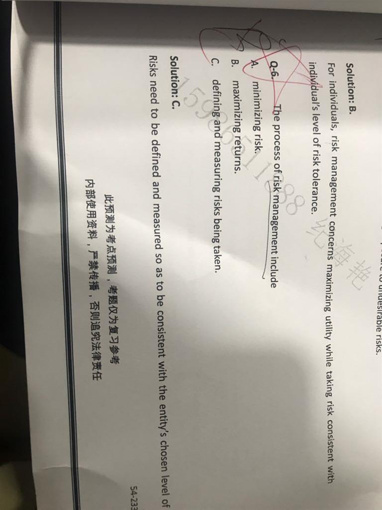 - 为什么不是C选项呢?credit risk是由于借款人违约未能偿还而使债权人遭受损失的风险;solvency risk是由于自己财务状况不佳而无法偿还到期债务的风险。二者紧密相连