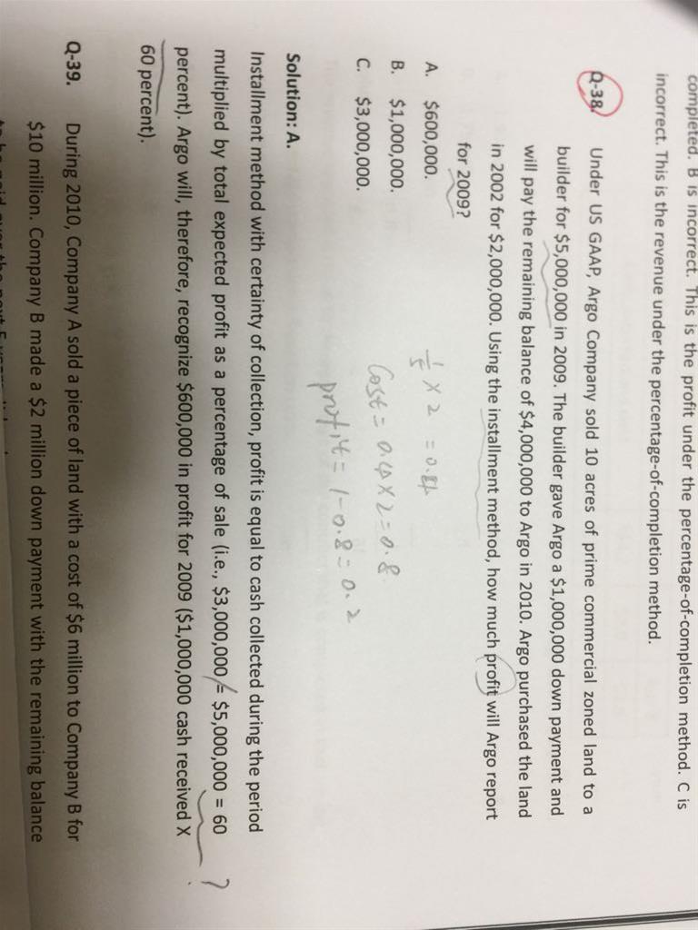 请问:第144题 对于sell put 的人来说,为什么他的损失不是38-36? 在38的时候sell put,行权价是36,那么当股价跌到35时候,对方会行权,那么损失就是38-36啊?谢谢老师