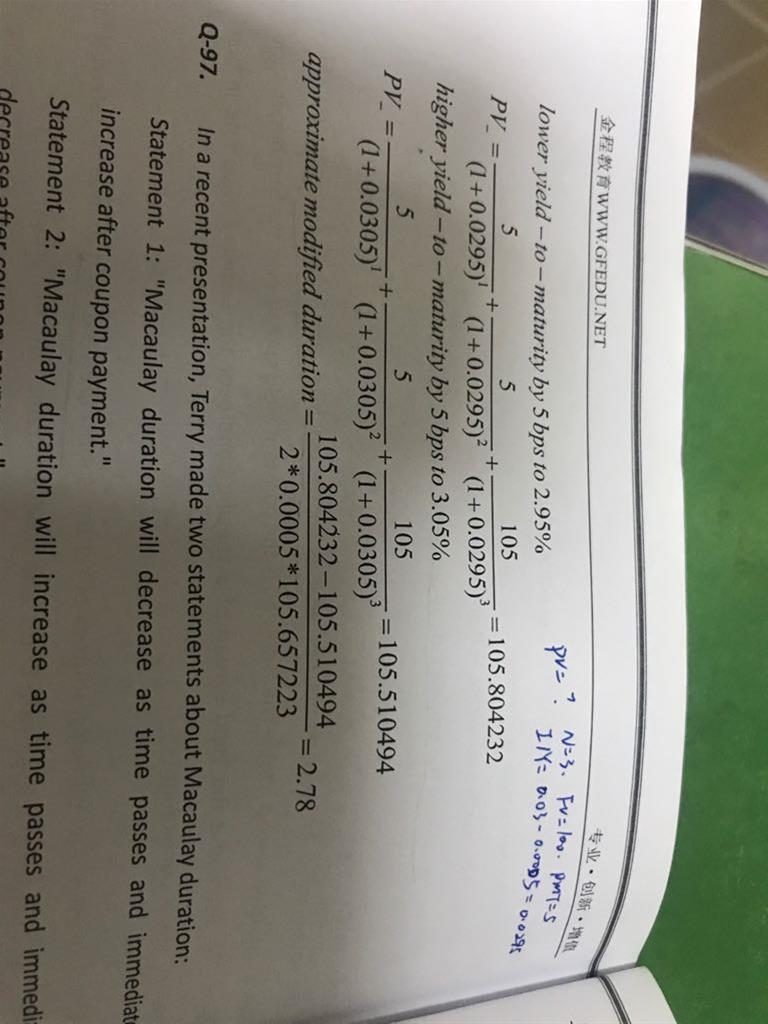 - 对于老师讲的这部分,1. 我理解FRA的Payoff始终等于利率期货的Payoff部分进行折现(除以1个大于1的数),也就是说,FRA的Payoff的变动幅度 应该 始终小于利率期货的变动幅度。2. 至于是涨多跌少,还是涨少跌多,其实MRR在分母上,可以根据1/x的曲线特点来理解,无非就是MRR上升时1/(1+MRR)的变动幅度 小于 MRR下降时1/(1+MRR)的变动幅度,所以如果MRR上升时,Payoff是上升的,那么就是涨少跌多,如果MRR上升时,Payoff是下降的,那就是涨多跌少。以上2点,我理解的对吗?