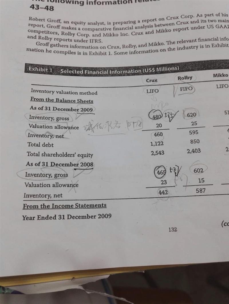 43题,算的是ctux公司,调整成FIFO下的inventory turnover,为什么要用gross的存货算,然后valuation allowance不是备抵DTA的吗,怎么可以用他算net的inventory