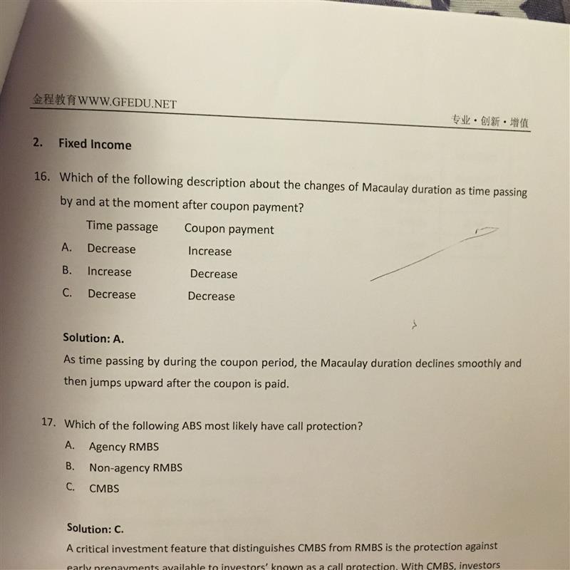 - 为什么不是C选项呢?credit risk是由于借款人违约未能偿还而使债权人遭受损失的风险;solvency risk是由于自己财务状况不佳而无法偿还到期债务的风险。二者紧密相连