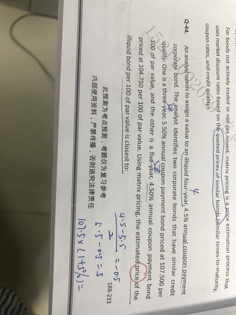 这道题我认为算的CAD/GBP的expected appreciation 然后CAD/GBP=USD/EUR除以USD/CAD乘EUR/GBP 所以 1)CAD/GBP的spot=1.3960/1.0110*1.2850=1.7743 2)CAD/GBP的Expected Spot Rate in One Year=1.3860/1.0300*1.2790=1.7211 3)1.7221/1.7743-1=-2.99% 没算出来答案,请老师看下问题在哪儿。