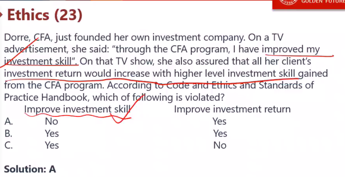 老师,这题的答案是不是应该选C啊,明明说的是: IMprove investment skill 是可以说的,而Improve investment return 是不可以说的呀。怎么就会选了A呢?