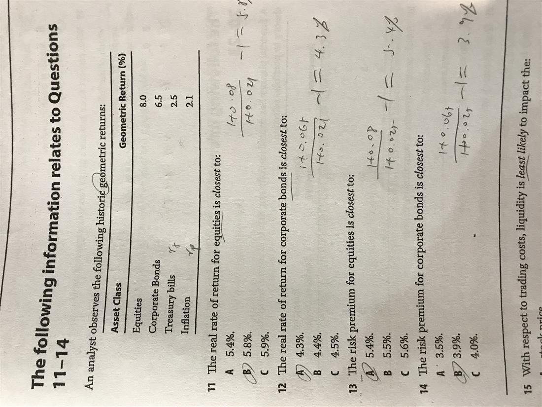 老师,能解答下为什么用那个公式来求解real rate of return和risk premium吗?看了答案,不是很理解