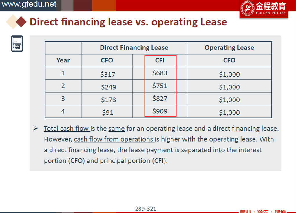 direct financing lease的lessor,请问老师:红框里的数是怎么算出来的?是什么数?为什么是CFI?