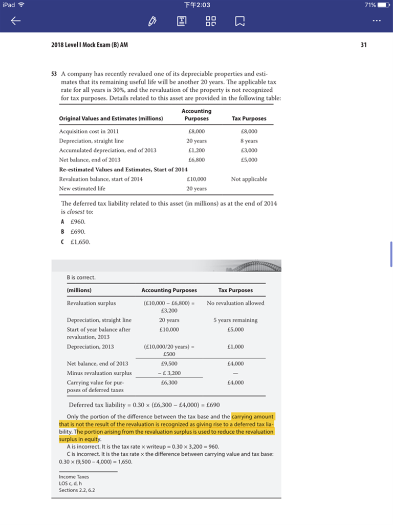 老师,这里DTL的括号难道不是负数的意思吗?那差值DTL不应该是-750-(-650)=-100吗?差值DTA=80,我用tax expenses =tax payable +DTL(差值)-DTA(差值)算,为什么不是这个答案?
