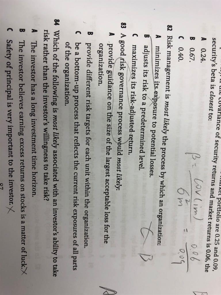老师,82题为什么不选C啊?风险管理不是意思是在一定的风险水平下,使得收益最大化?也就是risk-adjusted return