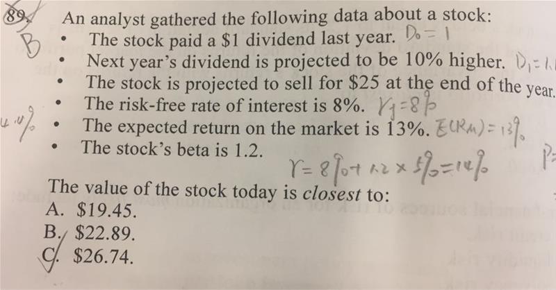 老师,这题为什么用P=D1/(r-g)算出来不对?答案是B