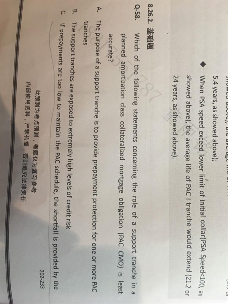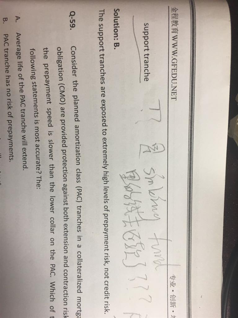 如果prepayment太低,support tranche里面也没有吧?为啥答案说是support trache 提供?