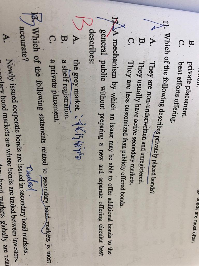第12题后面解析不太明白,grey market就是试发行的市场,shelf registration是注册发行,到底本质在哪里?第八题的A,觉得也没有错,为什么是C