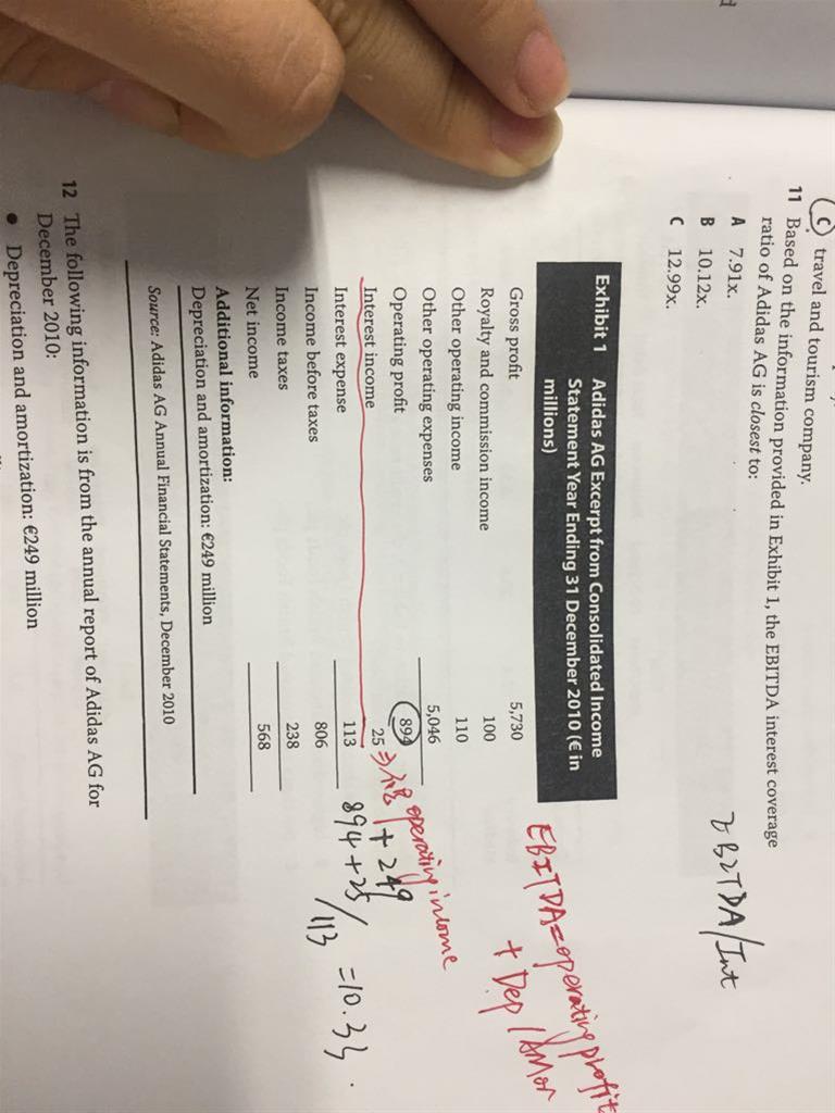 老师你好,请问一下11题,息税前利润是经营利润加折旧摊销,和税,还是整个公司的利润加折旧摊销和税,谢谢
