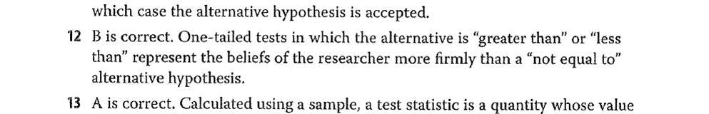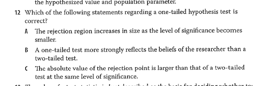 这道题A和C有明显错误,但是B选项不理解。选项是不是说单尾检验比双尾检验说明对研究结果更有信心。原假设是希望拒绝的,其实就是研究成果吧,看对不对,我们先认为这个成果对,相等难道不比大于或小于更有信心吗?为什么答案是用不相等来判断呢?