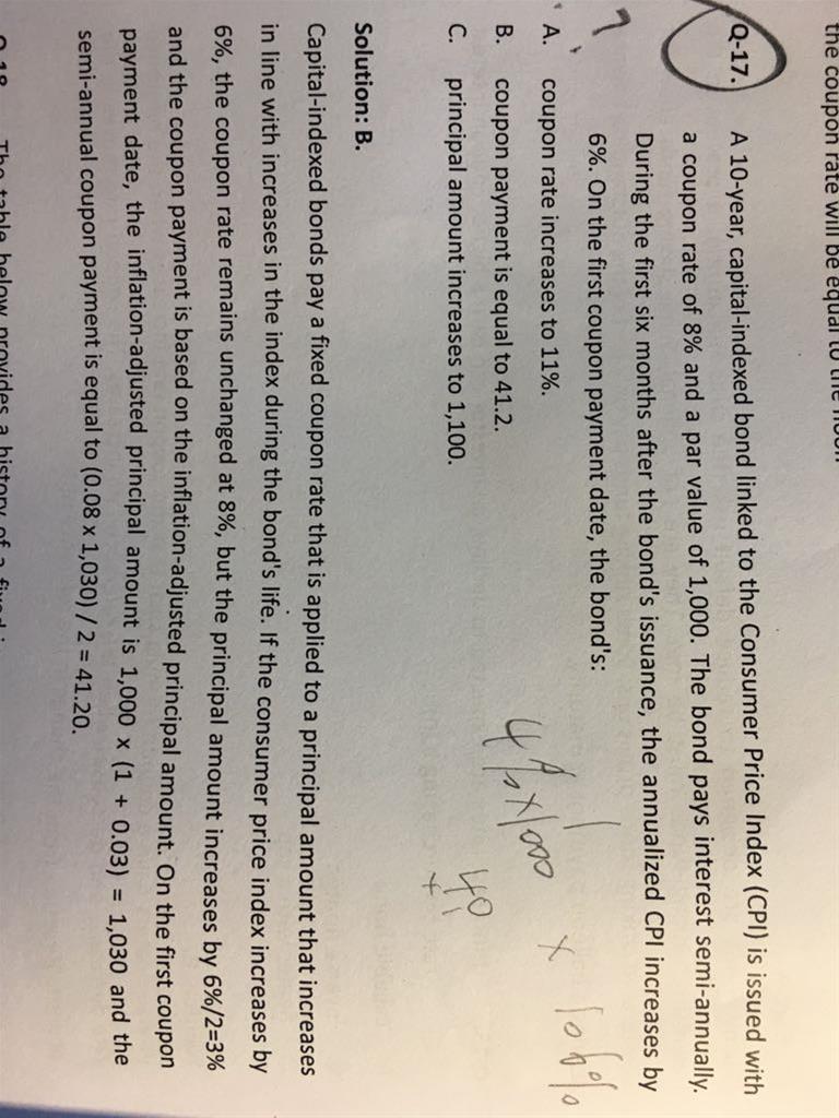 这个题目。意思是假设cpi 半年涨3%,所以第一个六个月coupon按提升3%本金来算是么