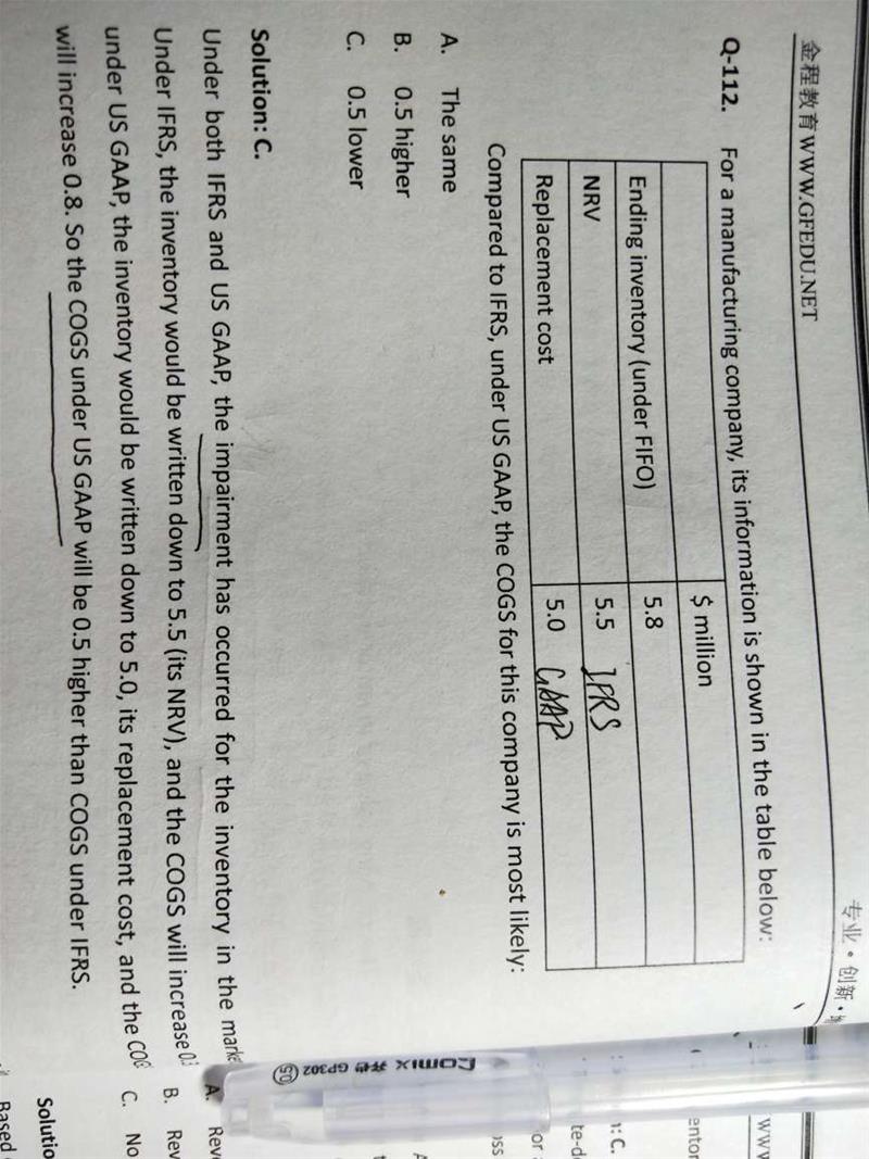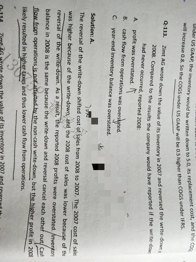 1.为什么减值对应cost of sales上升? 2. 答案c,减值是2007年的,回转在2008年。所以和不回转相比,回转的存货余额确实是好的吧?(就是不知道c哪错了。)