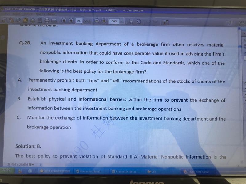 你好老师我想请问下I(B)客观独立性当中涉及到的部门之间的独立性以及防火墙的设置问题,能帮忙理下吗? 1.research department 2.asset management 3.investment banking department 4.brokerage 5.trading 基础班中胡老师说1和3需要设置防火墙, 百题Q28中3和4需要设置防火墙