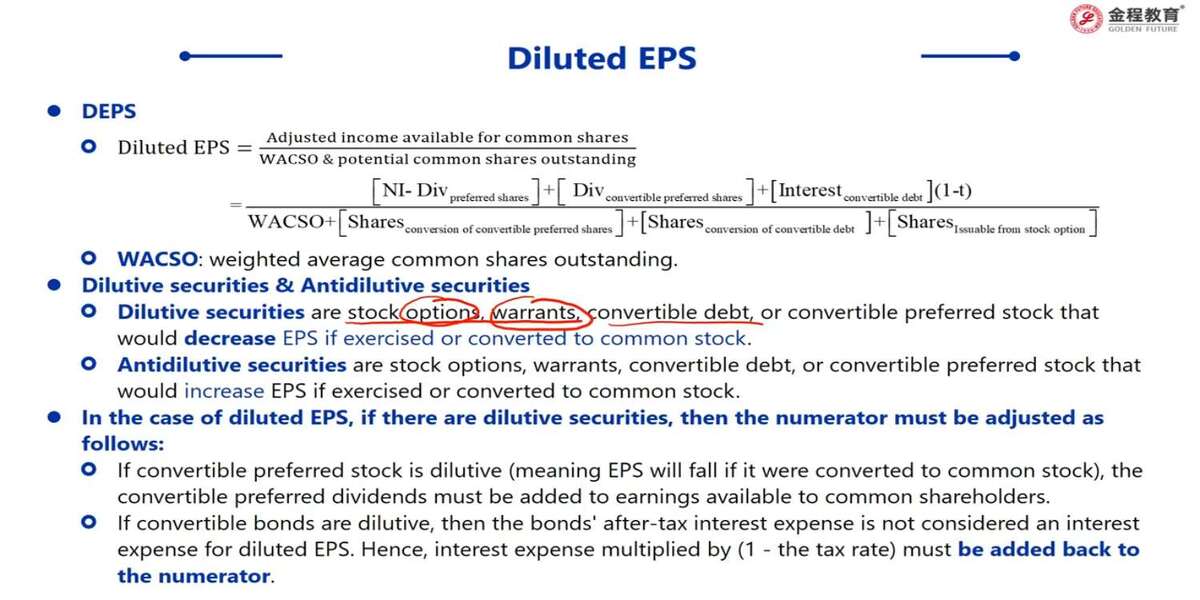 计算在外发行的平均加权加权股数时用了增发新股、回购、拆股和股票分红,但是在计算稀释每股收益时用了可转债、可转优先股和期权,请问如何区分加权平均股数的计算和稀释每股收益的计算,特别容易搞混
