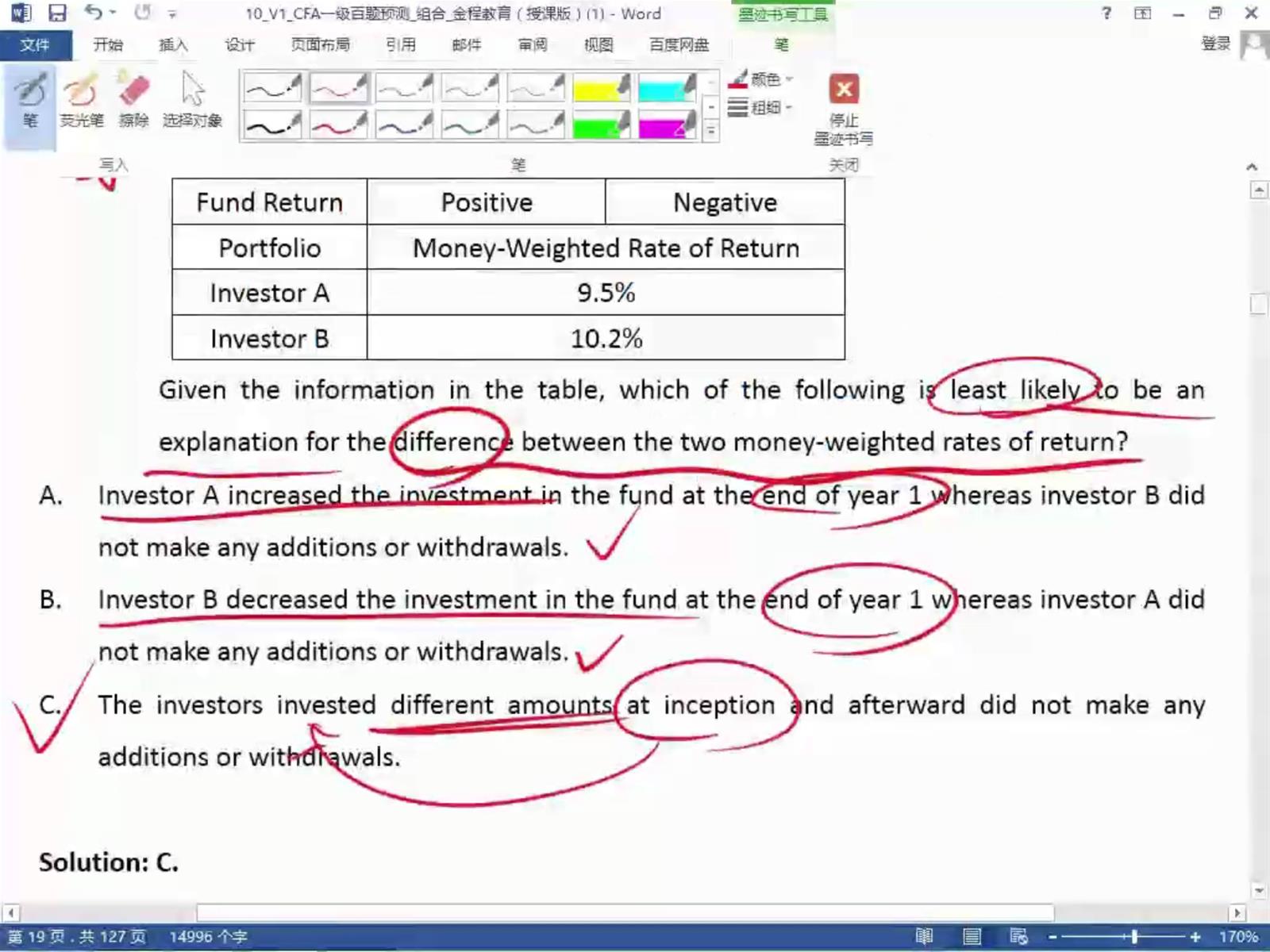 对于c,计算mwrr时也要计算初始流出金额的,为何说初始投资不影响?